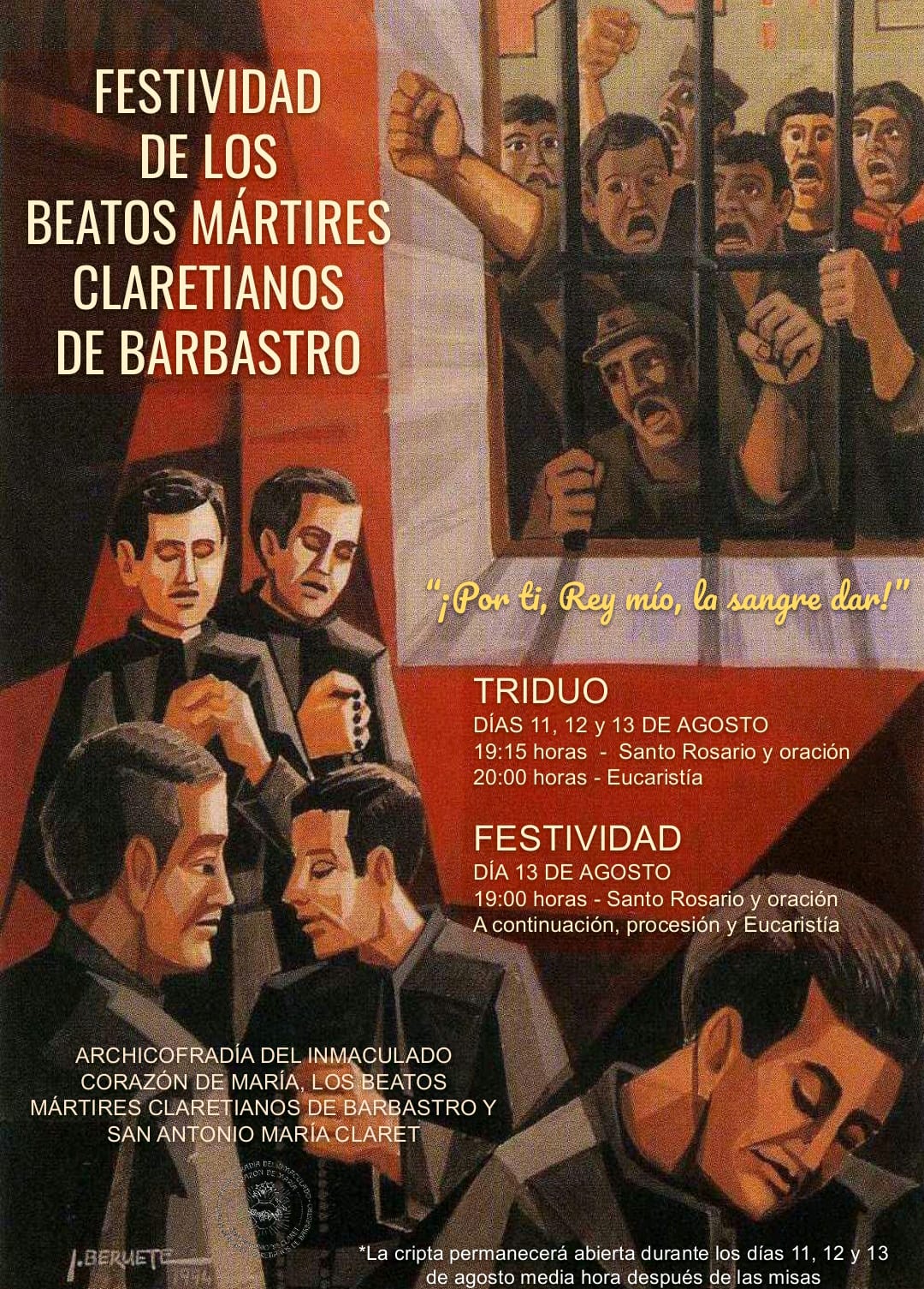 La Archicofradía del Inmaculado Corazón de María, los beatos mártires Claretianos y san Antonio María Claret de Barbastro organiza las celebraciones litúrgicas en la fiesta de los beatos mártires claretianos.