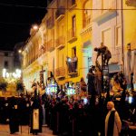 A las 12,30 horas, organizada por la Hermandad del Santo Cristo de la Agonía y Nuestra Madre Dolorosa, saldrá de la Iglesia de los Padres Escolapios, con la participación de sus pasos titulares. En la Plaza de Aragón se proclamarán las Siete Palabras. Recorrido: Argensola, Academia Cerbuna, Paseo del Coso, Plaza de Aragón y San José de Calasanz.