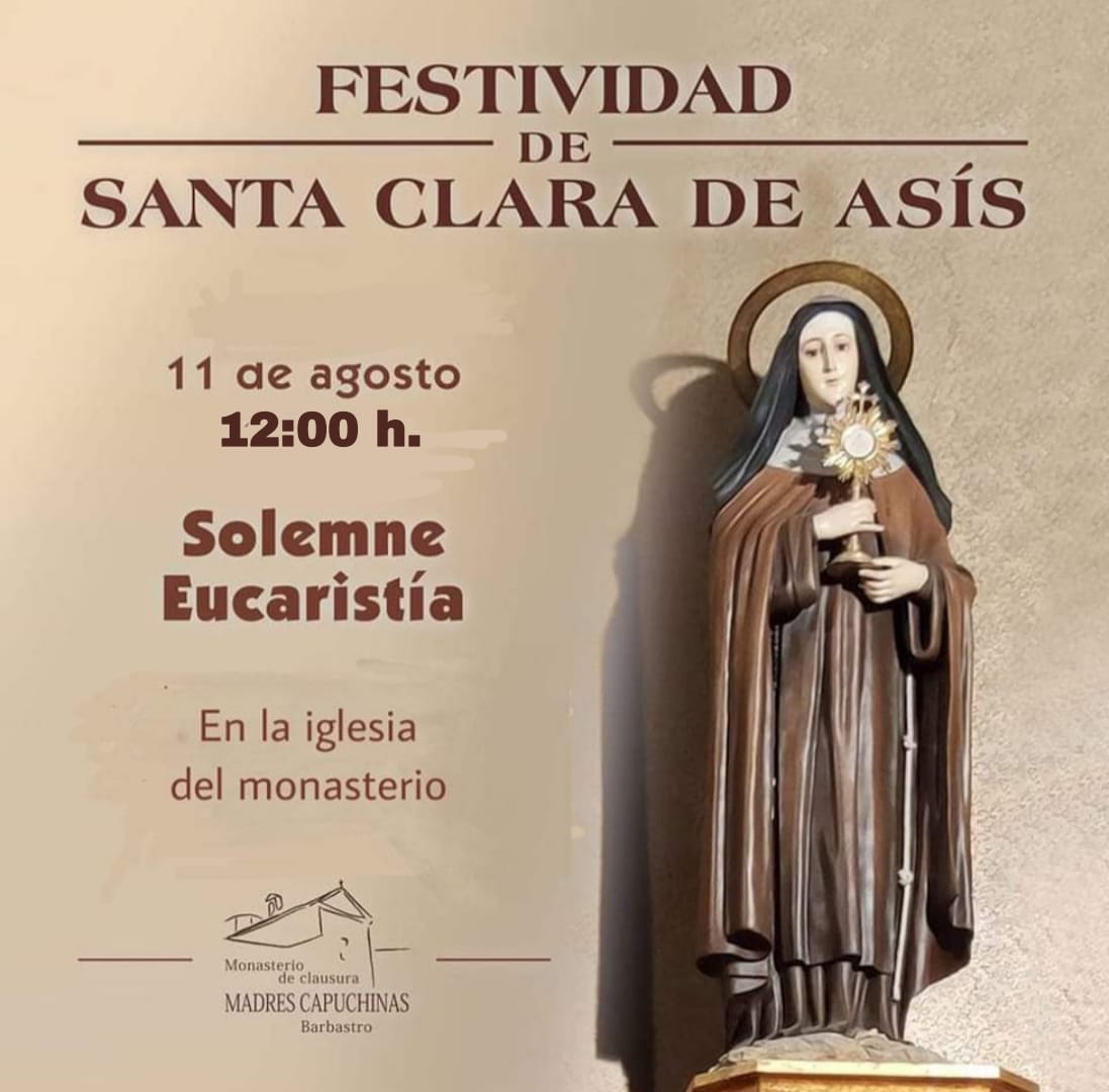Las Capuchinas de Barbastro celebran santa Clara con una eucaristía el día 11 de agosto, a las 12 horas.