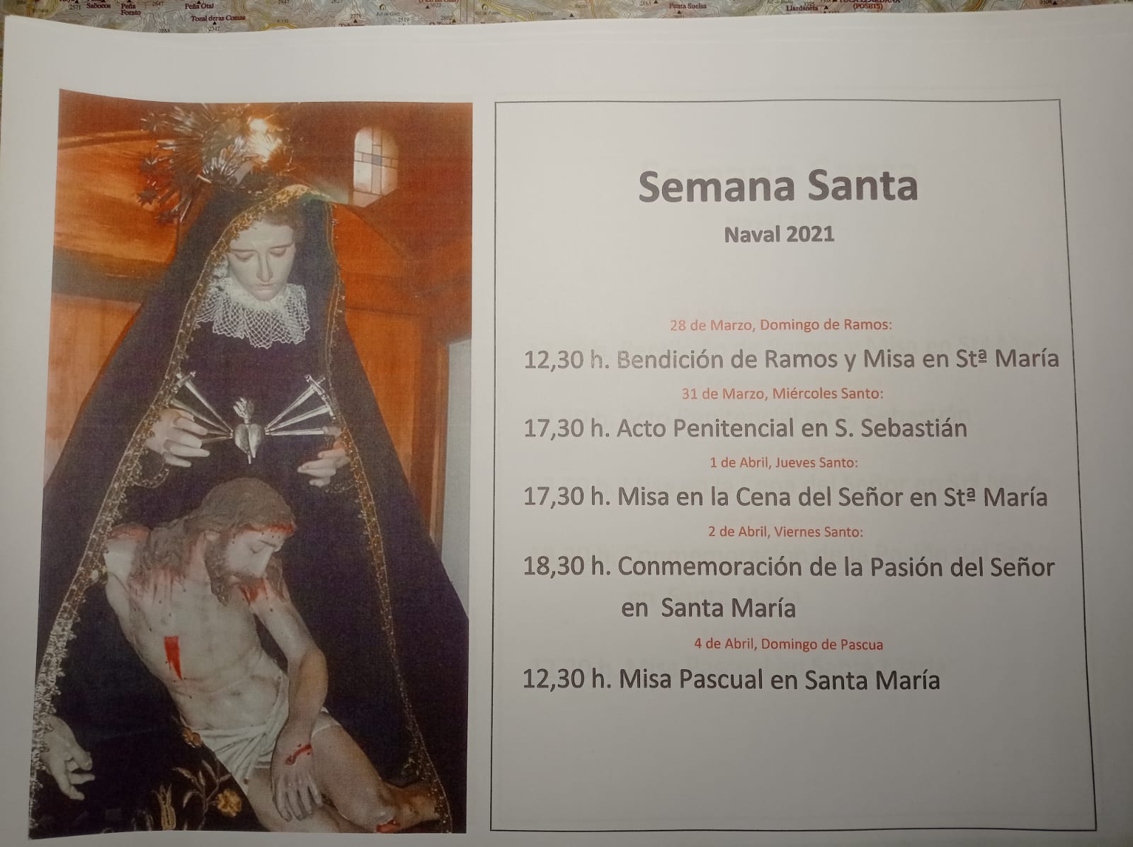 Celebraciones Semana Santa 2021. Naval Mar 28 28 Mar, 2021, 12:30 - 4 Abr, 2021, 12:30 Celebraciones Semana Santa 2021. Naval