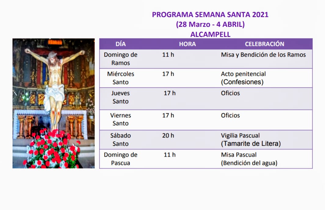 Celebraciones Semana Santa 2021. Alcampell Mar 28 28 Mar, 2021, 11:00 - 4 Abr, 2021, 12:00 Celebraciones Semana Santa 2021. Alcampell