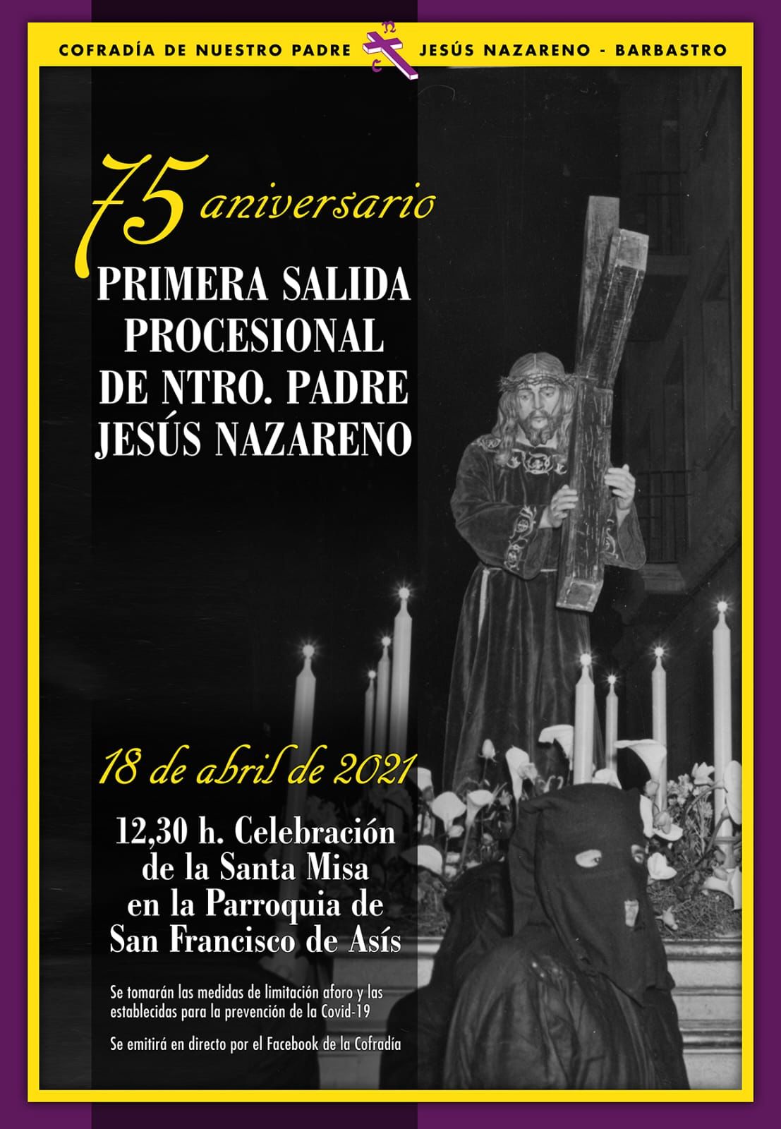 75 aniversario de la primera salida procesional de los Nazarenos. Barbastro Abr 18 12:30 - 13:30 75 aniversario de la primera salida procesional de los Nazarenos. Barbastro