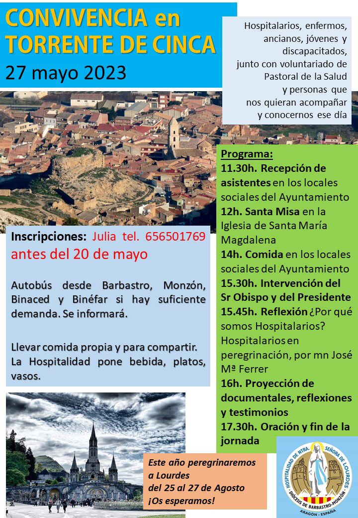 Convivencia Hospitalidad Diocesana de Lourdes. Torrente de Cinca May 27 11:30 - 17:30 Convivencia Hospitalidad Diocesana de Lourdes. Torrente de Cinca