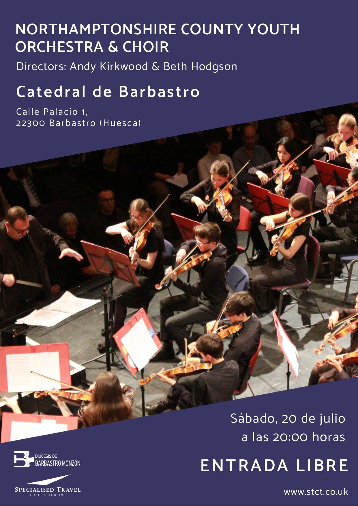 Concierto de NORTHAMPTONSHIRE COUNTRY YOUTH ORCHESTRA & CHOIR. Catedral de Barbastro Jul 20 20:00 - 21:00 Concierto de NORTHAMPTONSHIRE COUNTRY YOUTH ORCHESTRA & CHOIR. Catedral de Barbastro