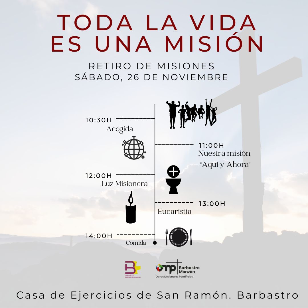 Bajo el lema “Toda la vida es una Misión”, el área de Misiones de Barbastro-Monzón celebrará el próximo sábado, 26 de noviembre, su retiro anual. La Casa de Ejercicios de […]