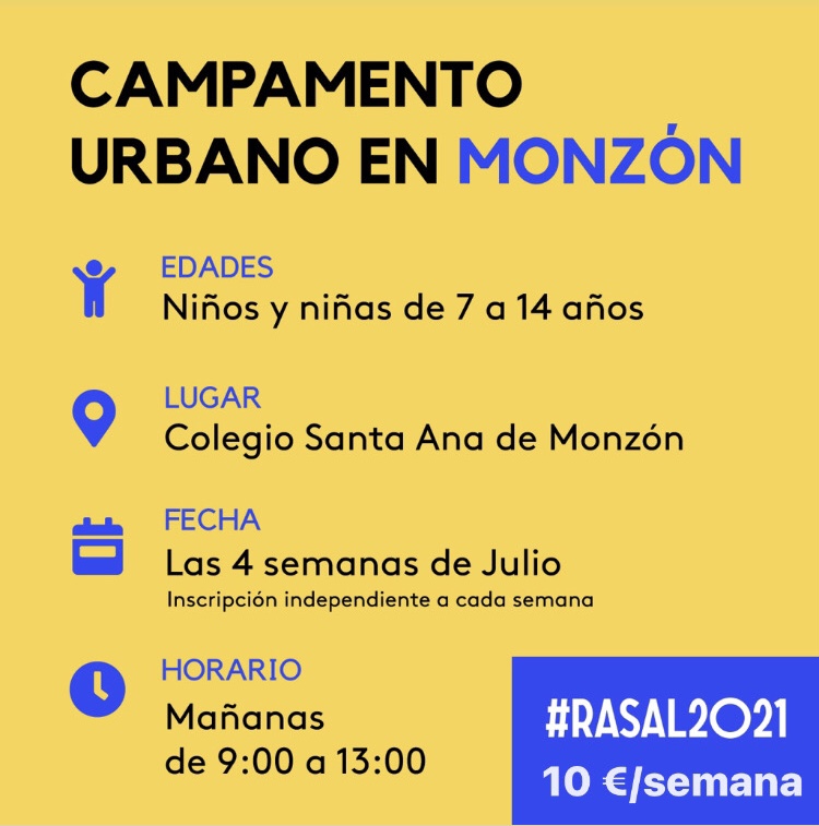 Monzón Huesca, España- Colonia urbana en Monzón: de lunes a viernes, del 5 al 30 de julio en el patio del colegio Santa Ana de Monzón, destinada a niños y niñas de 7 a 14 años. Ofrecemos una posibilidad de pasar las mañanas del verano (de 9 a 13, aunque tenemos cierta flexibilidad), haciendo actividades de todo tipo (juegos, […]