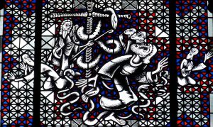 El libro de los Números relata un extraño episodio ocurrido en el desierto, mientras los israelitas caminaban, sudorosos y cansados. Como en otras ocasiones después de salir de Egipto, se revolvieron contra Dios y contra Moisés. Para colmo de males, fueron atacados por unas serpientes venenosas y murieron muchos de ellos. Entonces el pueblo recapacitó, acudió a Moisés y confesó su desconfianza y las murmuraciones con las que había vuelto a desahogar su rabia. Moisés, rezo al Señor y, siguiendo sus instrucciones, hizo una serpiente de bronce, la colocó en un estandarte y, cuando una serpiente mordía a alguno, éste miraba la serpiente de bronce y quedaba curado.